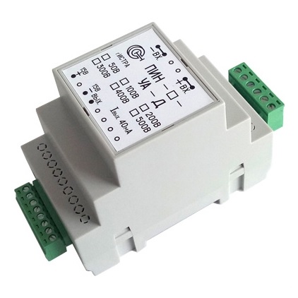 Преобразователи измерительные серии ПИН-_-УА-Д разработаны для преобразования напряжения постоянного, переменного и импульсных токов с гальванической развязкой входной цепи цепей контроля. Крепится на DIN-рейку.